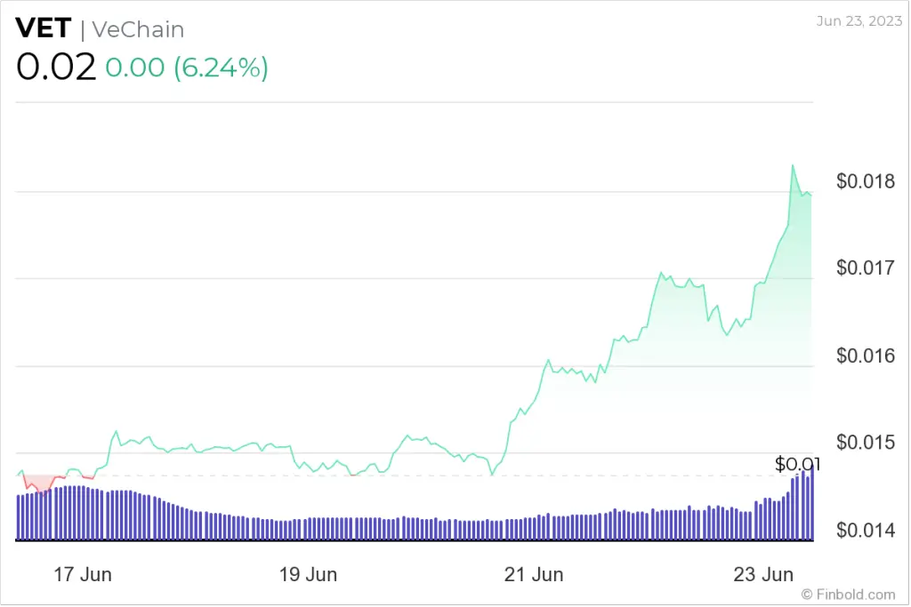 VeChain 7-day price chart. Source: