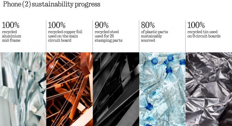 Η πιο πρόσφατη αποκάλυψη είναι η σχεδίαση για το νέο καλώδιο φόρτισης που θα συμπεριληφθεί στο Phone (2), ένα καλώδιο που έχει πλέον την ίδια διαφανή-σε-λευκό αισθητική που γίνεται το σήμα κατατεθέν της Nothing. Το μάρκετινγκ είναι ένα τεράστιο κόστος, αλλά πολύ ζωτικής σημασίας για μια σχετικά άγνωστη μάρκα και ευτυχώς για τη Nothing, ο Carl Pei είναι master σε αυτό. Θα σκεφτόσασταν “είναι ένα καλώδιο, ποιος νοιάζεται;”, αλλά αν ελέγξετε την ανάρτηση θα δείτε ότι έχει πάνω από 100 σχόλια. Αυτό είναι πολλά βλέμματα στο επερχόμενο Nothing Phone. Η εταιρεία έχει εργαστεί για να κάνει το Phone (2) πιο φιλικό προς το περιβάλλον από τον προκάτοχό του, μειώνοντας το αποτύπωμα άνθρακα στα 53,45 κιλά, 5 κιλά λιγότερο από το Phone (1). Ο νέος σχεδιασμός χρησιμοποιεί επίσης περισσότερα ανακυκλωμένα υλικά (το μεσαίο πλαίσιο είναι εξ ολοκλήρου κατασκευασμένο από ανακυκλωμένο αλουμίνιο).