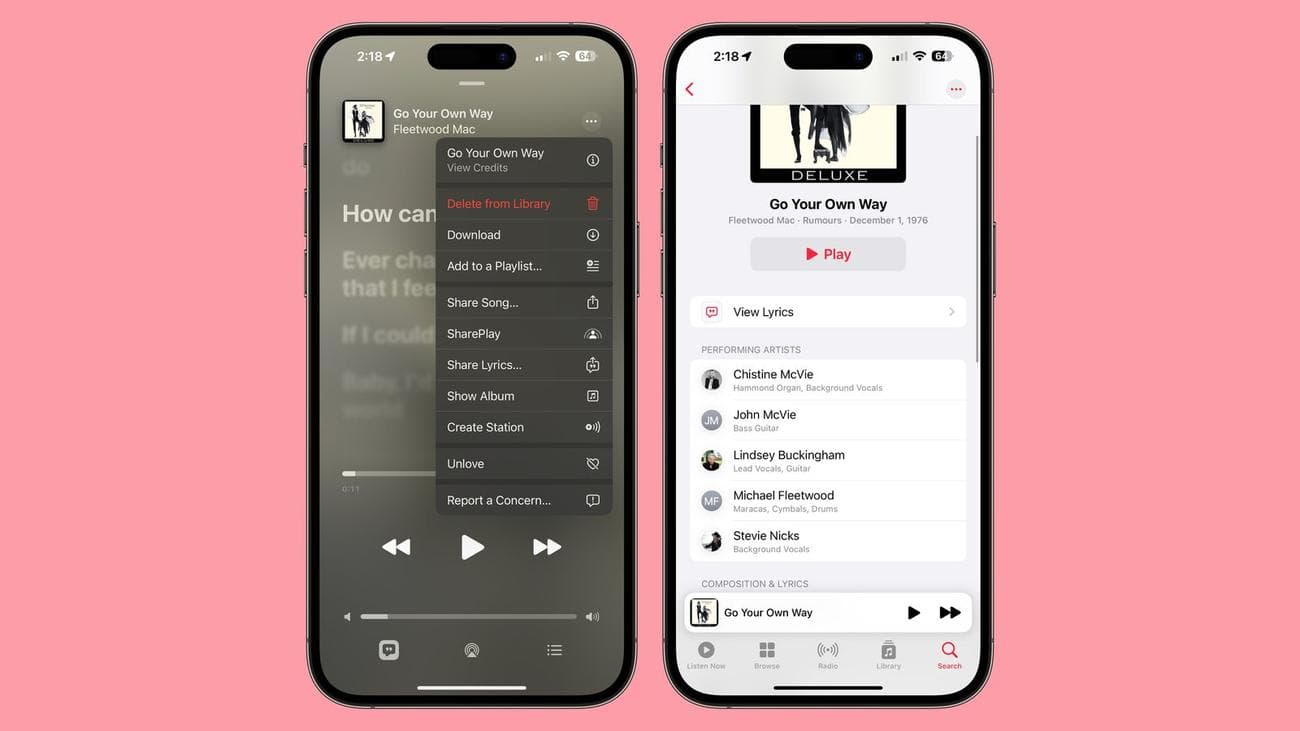 Στην εφαρμογή Apple Music, υπάρχει τώρα μια επιλογή για προβολή των πιστώσεων τραγουδιού πατώντας στο εικονίδιο με τις τρεις κουκκίδες δίπλα σε ένα τραγούδι που αναπαράγεται, αναζητείται ή βρίσκεται σε μια λίστα αναπαραγωγής. Οι συντελεστές δείχνουν όλους τους καλλιτέχνες, τους καλλιτέχνες σύνθεσης και όσους ασχολήθηκαν με την παραγωγή και τη μηχανική.