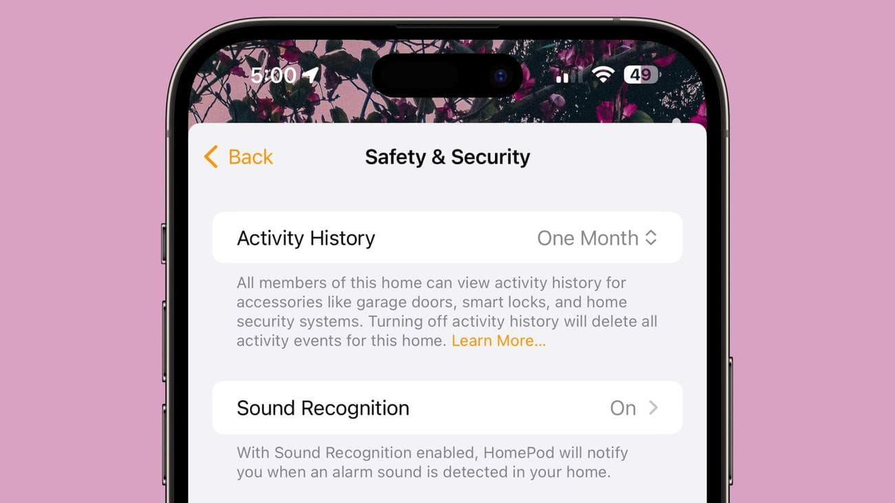 Η εφαρμογή Home στην τρίτη έκδοση beta υποστηρίζει επίσης το Ιστορικό δραστηριότητας, το οποίο μπορεί να απενεργοποιηθεί ή να ενεργοποιηθεί για τον προηγούμενο μήνα. Το Ιστορικό δραστηριότητας εμφανίζει συμβάντα δραστηριότητας για έξυπνες κλειδαριές, γκαραζόπορτες και συστήματα ασφαλείας σπιτιού.