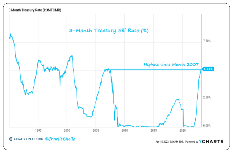 Πρώτη φορά ανεβαίνουν με τόσο γρήγορο ρυθμό τα επιτόκια. Πριν από ένα χρόνο αυτή η απόδοση ήταν στο 0,79% και πριν από δύο χρόνια ήταν μόλις 0,02%, όπως επισημαίνει ο αναλυτής Charlie Bilello.