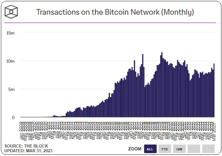 στο blockchain του Bitcoin αυξήθηκε επίσης από 8,39 εκατομμύρια συναλλαγές τον Φεβρουάριο