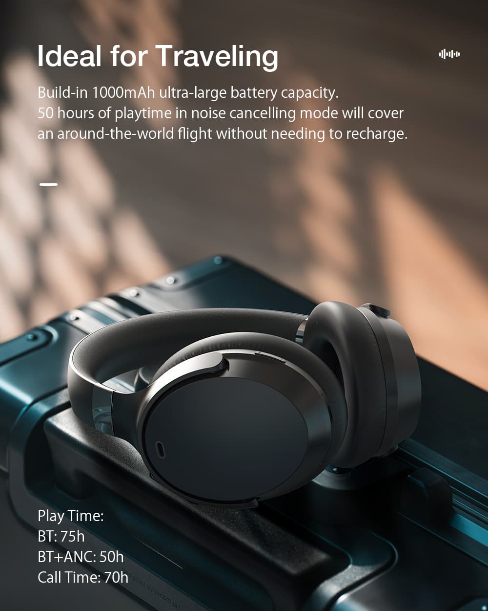 Η μπαταρία 1000mAh που έχουν στο εσωτερικό τους, σας προσφέρουν αυτονομία 75 ωρών, με το ANC κλειστό, που γίνεται 50 ώρες με το ANC ανοιχτό, με μια πλήρη φόρτιση να διαρκεί περίπου 2.5 ώρες, μέσω της