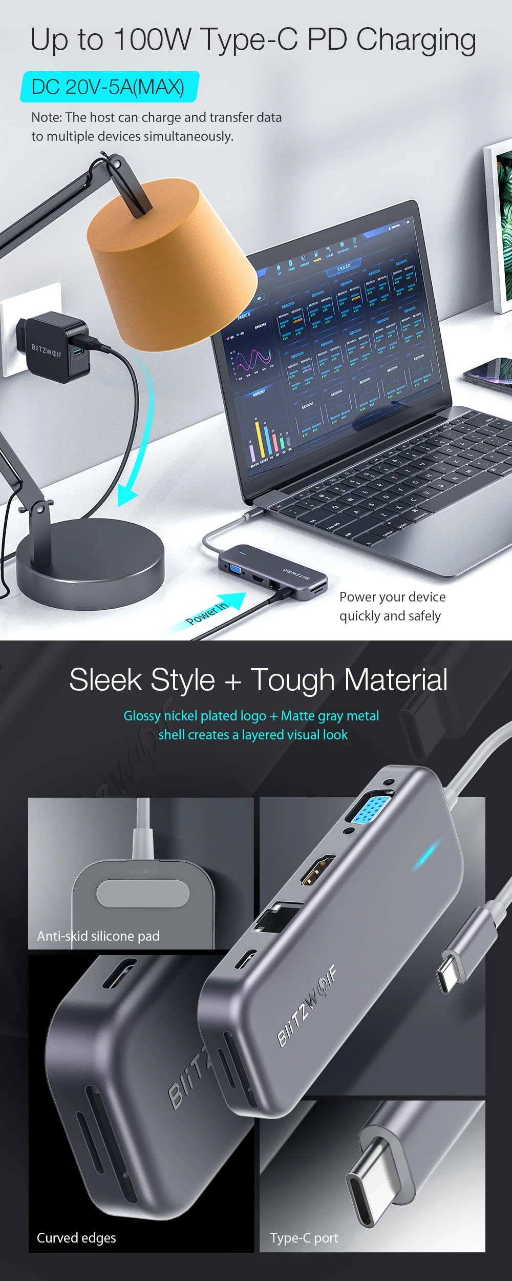 BlitzWolf BW-TH8 : USB-C Hub 11-σε-1, με USB/HDMI/VGA και Ethernet θύρες, αλλα και τροφοδοσία με μέχρι και 100W.
