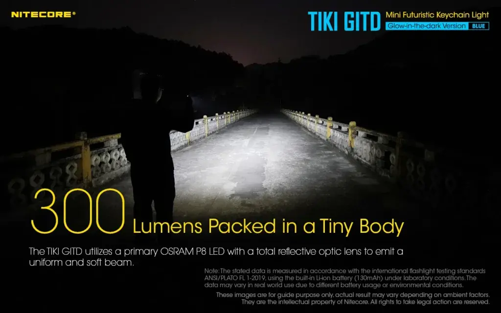 Πίσω στο κεντρικό LED, θα βρείτε 4 διαφορετικά επίπεδα φωτισμού, με 1-5-60-300 lumens αντίστοιχα, με τη μπαταρία των 130mAh που έχει ενσωματωμένη, να μπορεί να κρατήσει τον Nitecore Tiki , ζωντανό για σχεδόν 40 ώρες στην μικρότερη ένταση, με την μέγιστη να ρίχνει τη ζωή του στα 30 λεπτά.