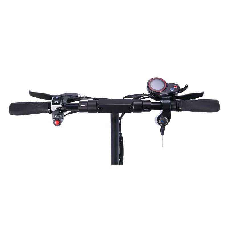 Στο τιμόνι του, θα βρείτε μια κλειδαριά με κλειδί, για να το ασφαλίζετε άμεσα και γρήγορα, κόρνα, φλάς, διακόπτη φώτων, τα δύο χερούλια των φρένων, και μια μικρή στρογγυλή οθόνη ενδείξεων.