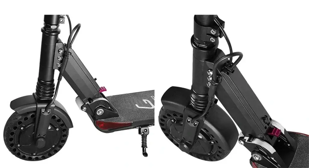 – This scooter uses a gapless T handle, which is safer during driving