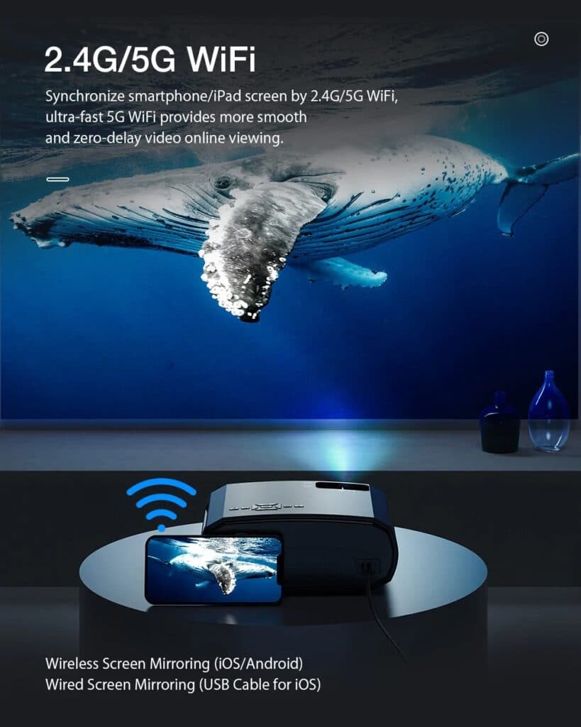 Ο BlitzWolf BW-VP13 έχει Dual Band WiFi για να συνδεθεί με το κινητό σας, πράγμα που σημαίνει οτι μπορείτε να κάνετε Mirroring χρησιμοποιώντας το ταχύτερο και πιο σταθερό 5Ghz δίκτυο του router σας, ενώ προσφέρει και Bluetooth, για να συνδέσετε ποντίκια, πληκτρολόγια, airmouse, ηχεία και άλλα τέτοια κοκοψόψαρα.