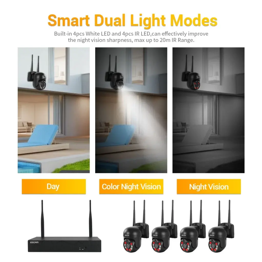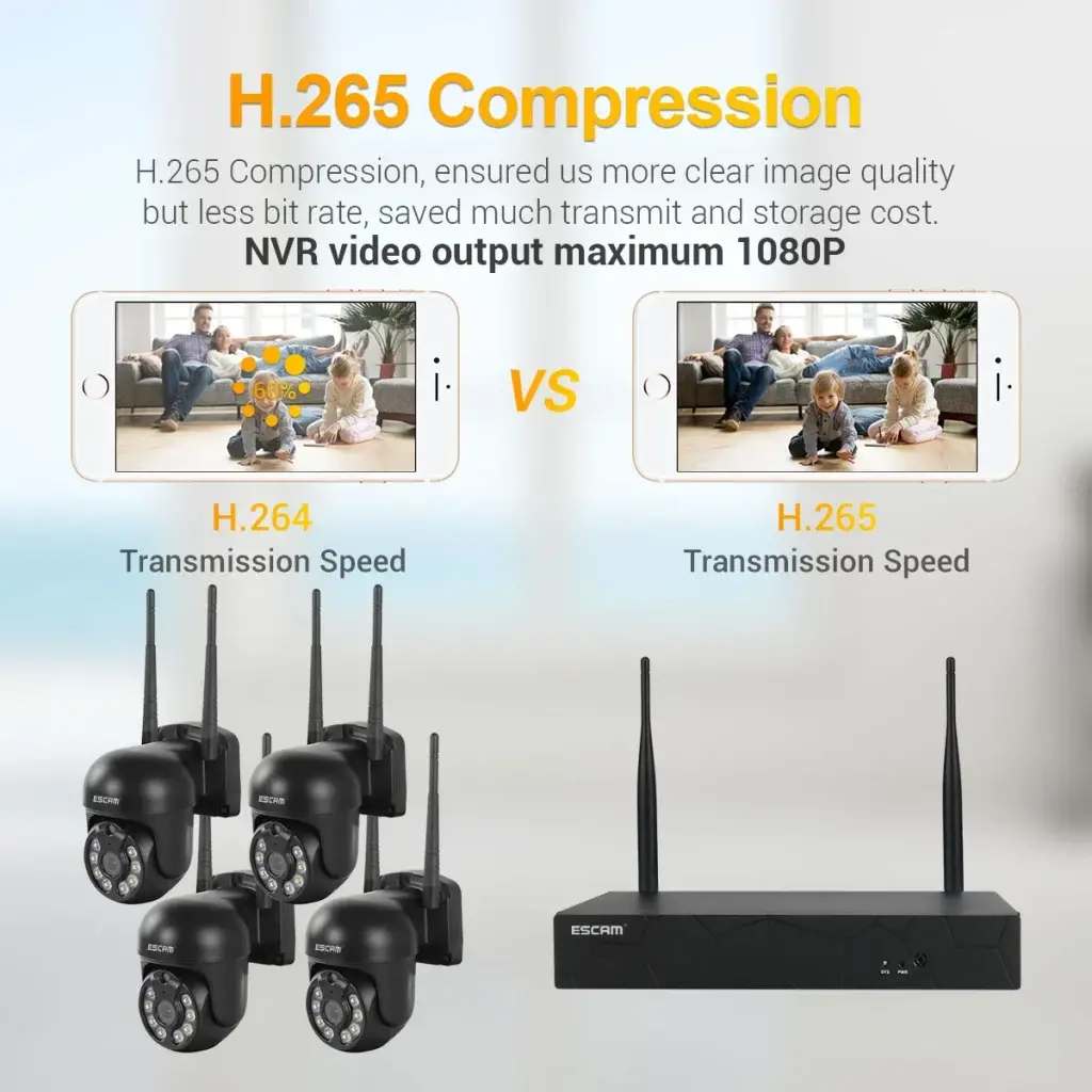 [#Ιστορικό_Χαμηλό] ESCAM WNK614 : Ολοκληρωμένο σύστημα παρακολούθησης, με 4 περιστρεφόμενες κάμερες 3MP και οκτακάναλο καταγραφικό.