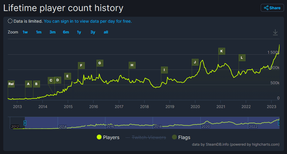 Η δημοφιλία του παιχνιδιού έχει κορυφωθεί τελευταία, αφού το προηγούμενο αξιοσημείωτο ρεκόρ ήταν οι 1,308,963 παίκτες στις 16 Απριλίου του 2020. Το εντυπωσιακό είναι πως