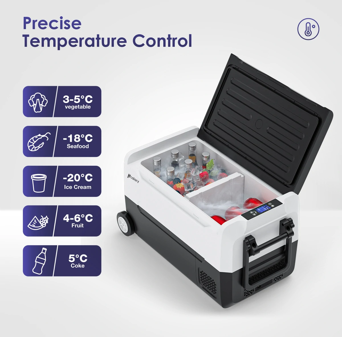 Τα ψυγεία της Hcalory, λειτουργούν με κομπρέσορα, ο οποίος μπορεί να φτάσει θερμοκρασίες -20 βαθμών κελσίου μέσα στο ψυγείο, με ένα μπουκάλι νερού να χρειάζεται περίπου 4.5 ώρες για να κατέβει από τους 20 στους -20. Αν σας σας ενδιαφέρει μόνο η συντήρηση, το να φτάσει τους 0 στο εσωτερικό του, χρειάζεται μόλις 25 λεπτάκια.