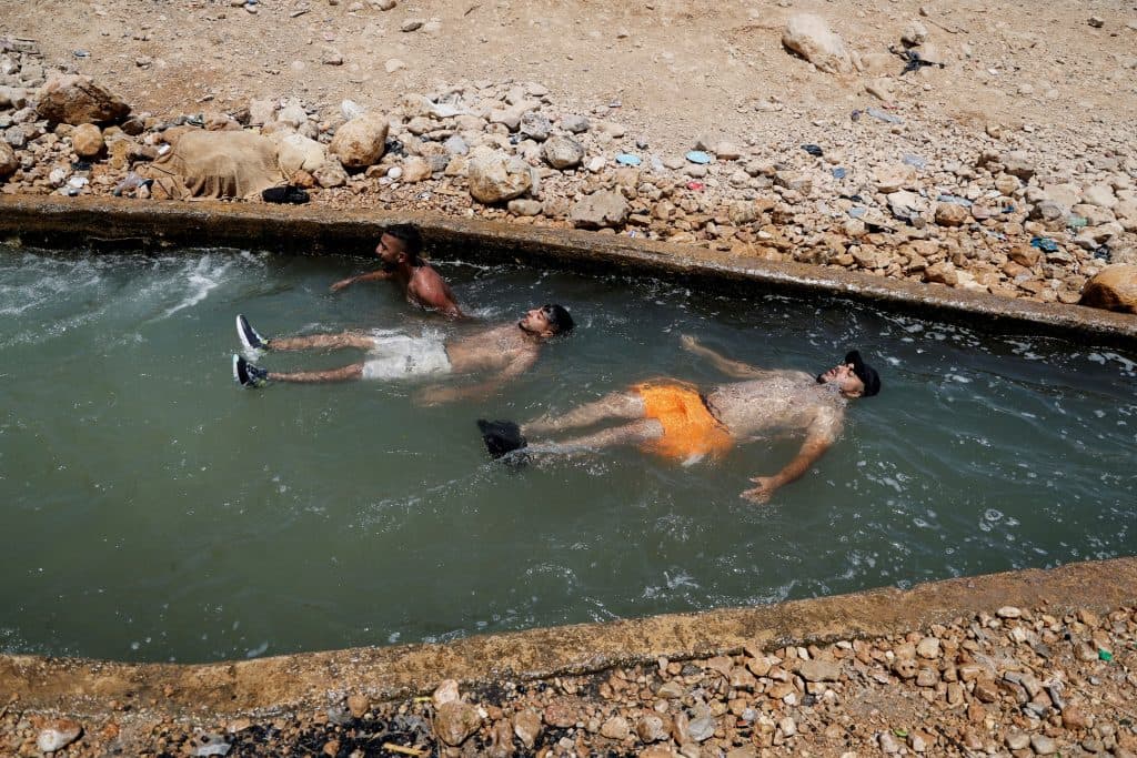 Παλαιστίνιοι δροσίζονται στα αρδευτικά κανάλια της Δυτικής Όχθης (Reuters)