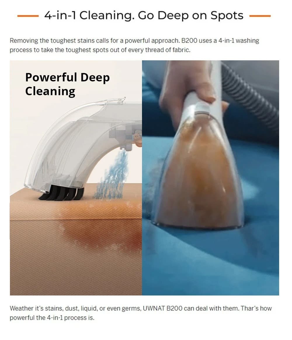 Αν ψάχνετε ένα μηχάνημα που καθαρίζει αποτελεσματικά και σε βάθος ΌΛΕΣ σχεδόν τις επιφάνειες, τότε η UWANT B200 είναι αυτό ακριβώς που ψάχνετε,