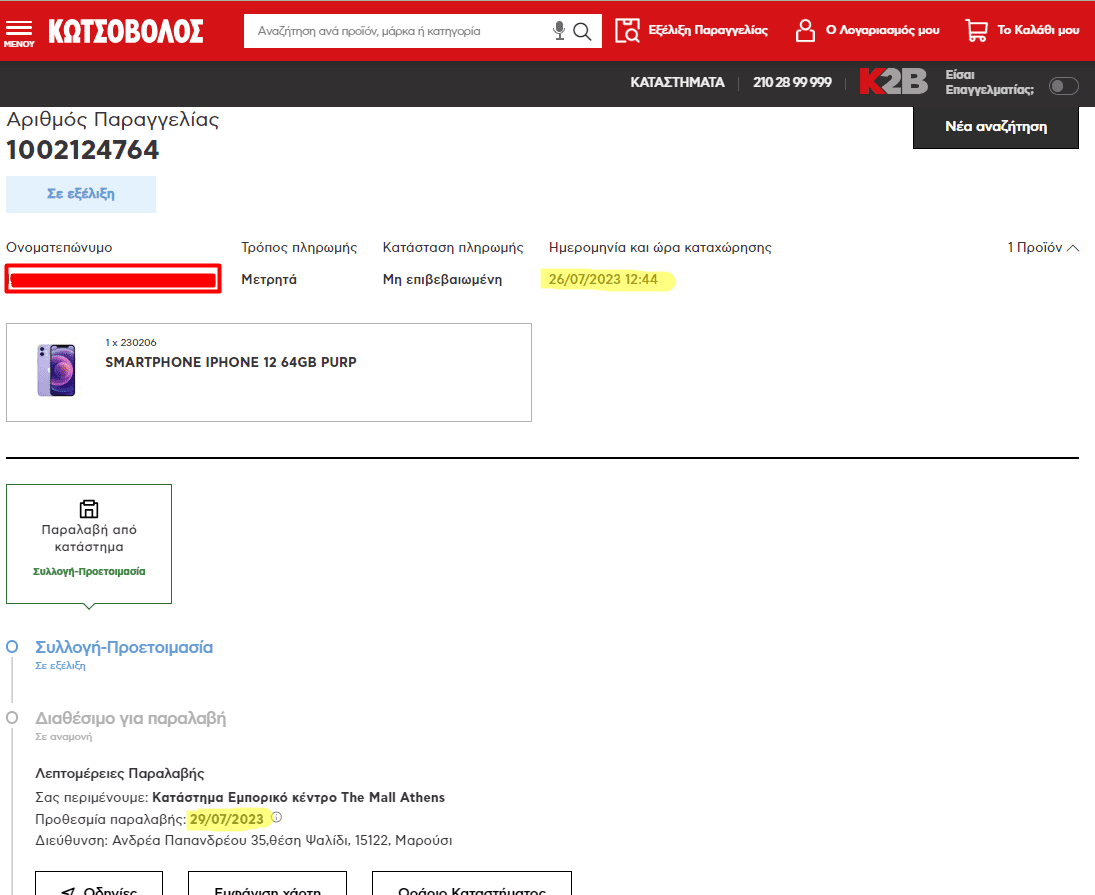 31/07/23 το status της παραγγελίας ακόμα δεν έχει αλλάξει