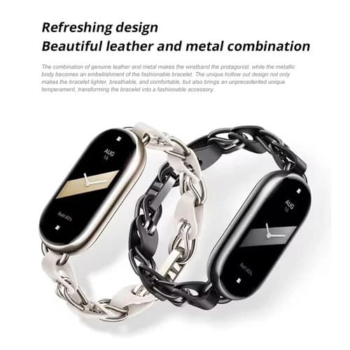 , στις οποίες ασφαλίζουν τα λουράκια. Αυτό επιτρέπει στο band 8 να αλλάζει εκ βάθρων στυλ, αφού μπορείτε να του βάλετε δερμάτινα λουράκια και μπρασελέ, τα οποία έχουν διακοσμητικούς κρίκους στο σημείο σύνδεσης με το ρολόι κάνοντας το πολύ πιο.. μοδάτο, απο τα κλασσικά Bands.