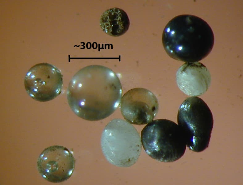 Οι μικρομετεωτίτες έχουν συνήθως σφαιρικό σχήμα λόγω της τήξης του υλικού τους από την τριβή με την ατμόσφαιρα (Shaw Street / Wikimedia Commons)