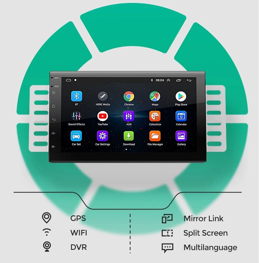 Εδώ έχουμε μια 2Din πηγή, με οθόνη 7″, με ανάλυση 1024 x 600, και εντελώς ορθογώνιο σχέδιο, για να μην έχετε προβλήματα εγκατάστασης, είτε απευθείας, είτε με έξτρα πάνελ αν το χρειάζεται το αυτοκίνητο σας, λόγω κονσόλας.