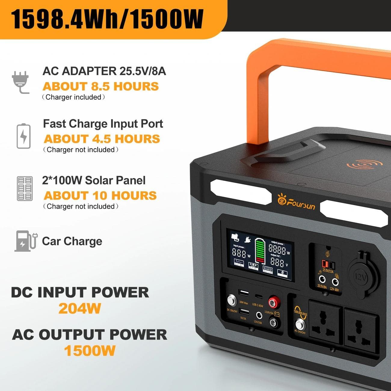 Το ίδιο το Power Station, μπορεί να φορτιστεί απο πρίζα (8.5 ώρες) απο την USB-C θύρα του στα 100W(4.5 ώρες) απο ηλιακό Panel (10ώρες στην καλύτερη) ή απο τον φορτιστή μέσω αναπτήρα αυτοκινήτου, (10 ώρες).
