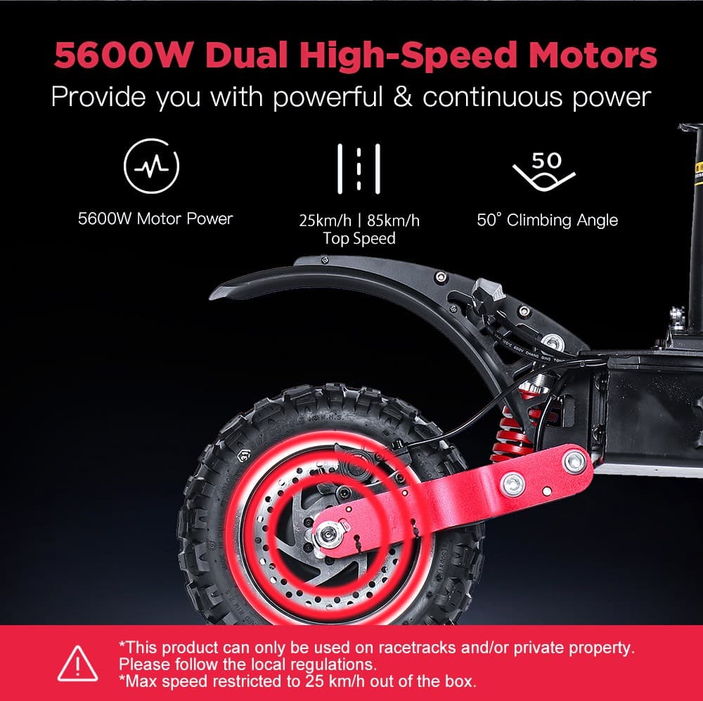 Γιατι τόσο μεγάλο άγχος για να σταματήσετε; Γιατι το LAOTIE ES18P είναι ένα ΤΕΡΑΣ. To πατίνι της Laotie έχει δύο ξεχωριστά μοτέρ, ένα σε κάθε τροχό, το κάθε ένα απο τα οποία έχει ισχύ 2800W, οπότε συνολικά έχετε στην διαθεσή σας,