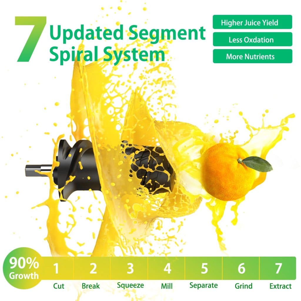 Ο αποχυμωτής γυρίζει τoν βιδωτό άξονα στα 85-115rpm για να διατηρήσει όσο το δυνατόν περισσότερα θρεπτικά στοιχεία απο τα υλικά που χρησιμοποιείται. Παρόλα αυτά, ένα γεμάτο ποτήρι χυμό χρειάζεται μόλις 25″ για να γεμίσει!