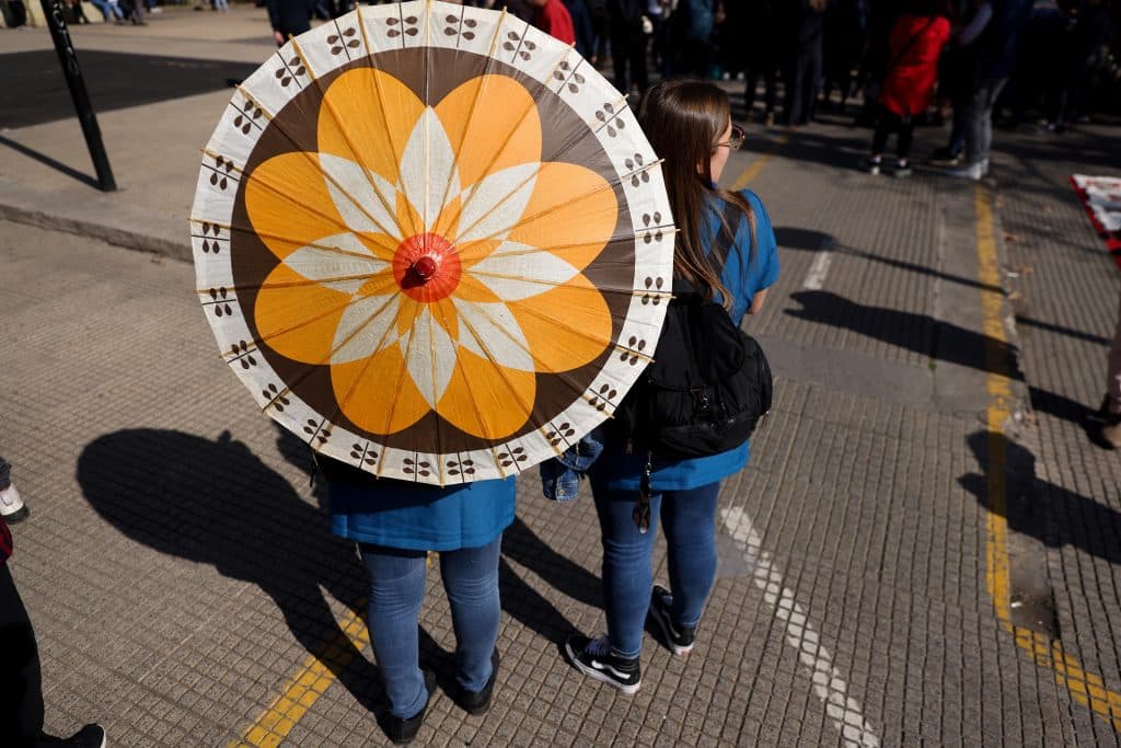 Με παρασόλι η βόλτα στο Σαντιάγο της Χιλής στις 3 Ιουλίου (Reuters)