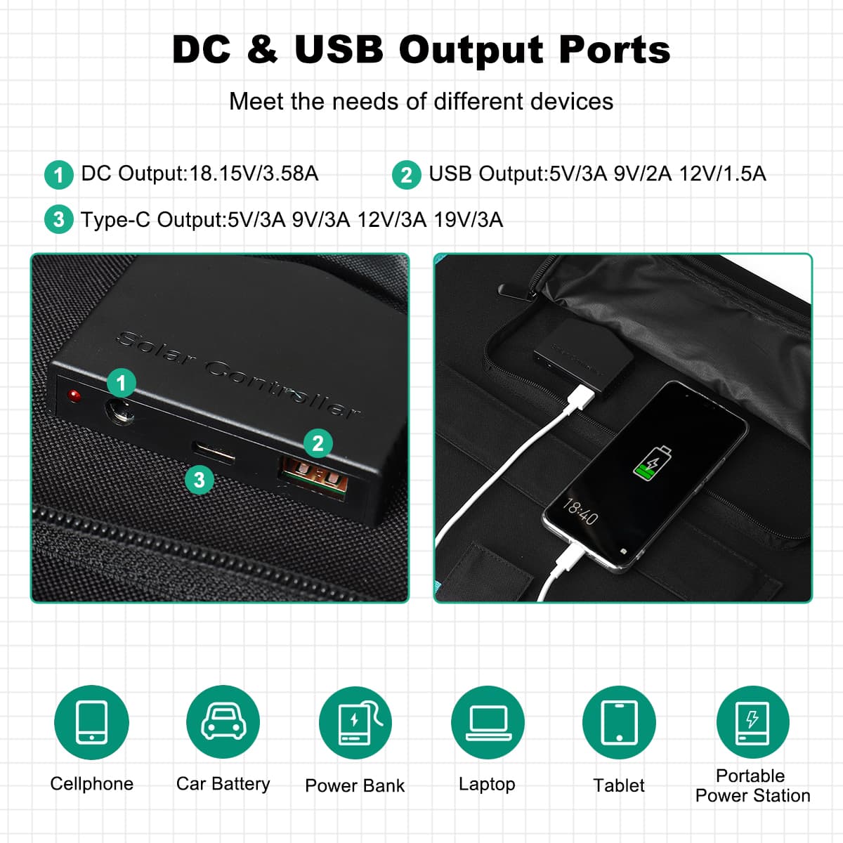 Σε αυτή τη θύρα μπορείτε να συνδέσετε και τα καλώδια μπαταρίας με τις δαγκάνες που θα βρείτε στο πακέτο, για να φορτίσετε με την δύναμη του ήλιου τις μπαταρίες του αυτοκινήτου/σκάφους σας.