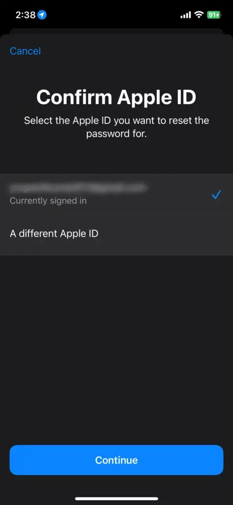 - Εισαγάγετε το αναγνωριστικό της Apple συνδεδεμένο ή το email σας συνδεδεμένο με τον λογαριασμό σας και πατήστε επόμενο.