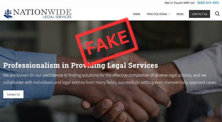 Το υποσέλιδο του ιστότοπου Nationwide Legal Services αναφέρει ότι η διεύθυνση είναι 401 Congress Ave. #1540 Austin, TX 78701. Google το και θα βρείτε ένα κτίριο 33 ορόφων “Frost Bank Tower”. Καμία τέτοια νομική εταιρεία δεν είναι καταχωρημένη ως μισθωτής σε αυτό το κτίριο.