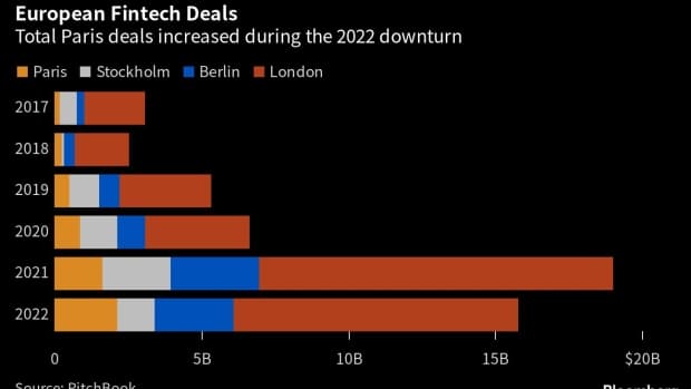 Ένα γενναιόδωρο πρόγραμμα τεχνολογικής βίζας, δημόσιες επιχορηγήσεις και το γεγονός ότι οι ιδρυτές έχουν φορολογικά κίνητρα για να στηρίξουν τα κεφάλαια: Το Παρίσι προσελκύει τις νεοφυείς επιχειρήσεις με πολλούς τρόπους. Οι συμφωνίες fintech που έγιναν για πρώτη φορά στη γαλλική πρωτεύουσα αυξήθηκαν κατά 22 εκατ. δολάρια σε 96,4 εκατ. δολάρια το 2022, σύμφωνα με τα στοιχεία του Pitchbook.