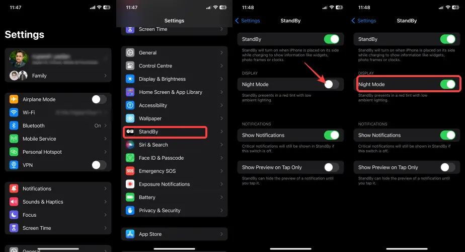 Όταν συνδέετε το iPhone σας σε φορτιστή τη νύχτα, σε χαμηλό φωτισμό περιβάλλοντος, το ρολόι αλλάζει σε κόκκινο λόγω της κατάστασης αναμονής, γνωστή ως Red Tint. Σε περίπτωση που θέλετε να απενεργοποιήσετε την κόκκινη απόχρωση, μπορείτε να ακολουθήσετε τα βήματα που αναφέρονται παρακάτω: