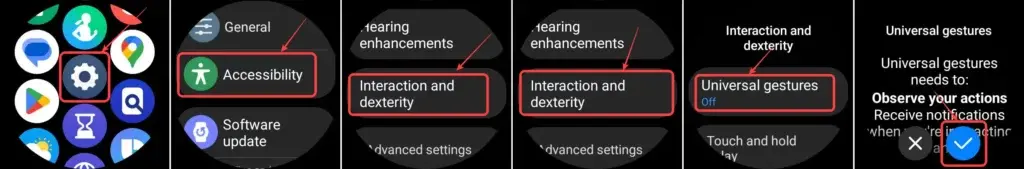 Ενώ μπορείτε να εκτελέσετε ορισμένες εργασίες με το Galaxy Watch σας χρησιμοποιώντας τη λειτουργία Universal Gestures, μια ενημέρωση UI Watch 5 επιτρέπει σε πολλές γενιές έξυπνων ρολογιών Galaxy να χρησιμοποιούν τη λειτουργία Universal Gestures. Αντίθετα, τα