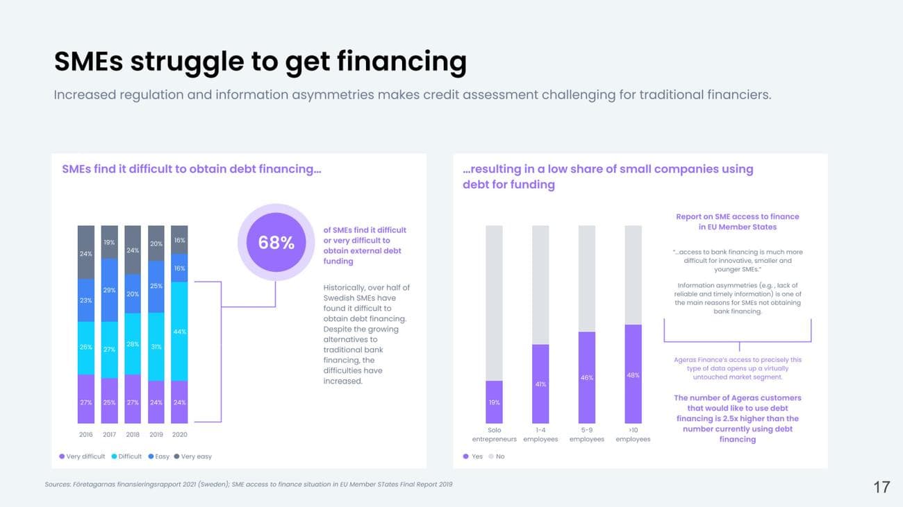 Ουσιαστικά, ο Ageras αξιοποιεί τα δεδομένα του, ώστε να μπορεί να προσφέρει περισσότερα δάνεια σε επιχειρήσεις που αποκαλεί «μεσαίου κινδύνου».
