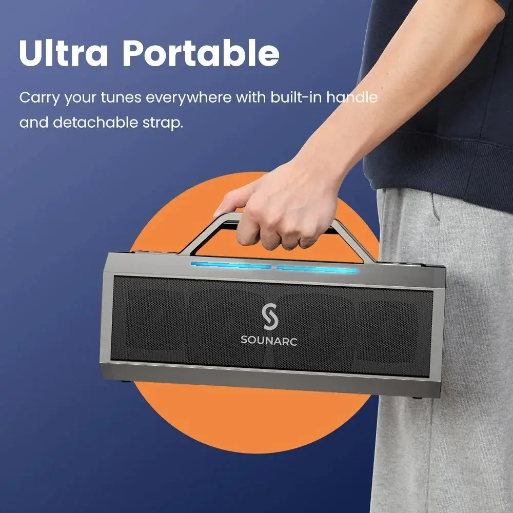 To party speaker της Sounarc, είναι φορητό, και έχει και χερούλι για να το μεταφέρετε εύκολα, με μια μπαταρία