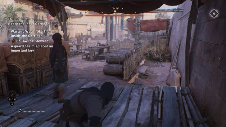 • Βήμα 3 – Ο Αγωνάρχης θα περπατήσει ακριβώς μέσα από την κύρια αυλή όπου οι στρατιώτες εκπαιδεύονται – προφανώς όχι κάπου που μπορείτε να ακολουθήσετε. Κολλήστε στον τοίχο που ακολουθείτε. Υπάρχει μόνο