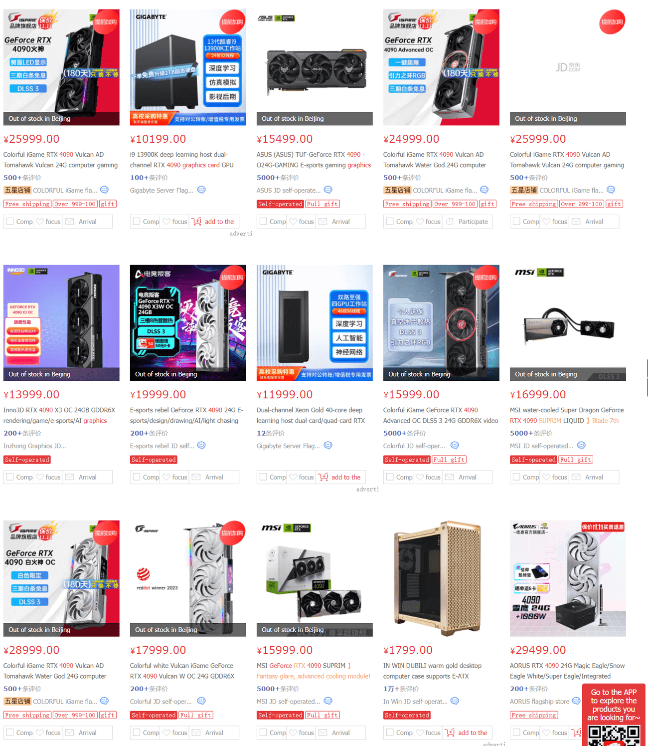 Σε όλες τις μεγάλες κινεζικές πλατφόρμες λιανικής, το GeForce RTX 4090 της NVIDIA πωλείται σε περίπου 26.000 RMB / 3550 USD, που είναι περίπου 100% αύξηση τιμής σε σύγκριση με το επίσημο MSRP των 12999 RMB / 1777 USD. Τα επίπεδα αποθεμάτων ενδέχεται να φτάσουν σε ιστορικό χαμηλό, δεδομένου ότι οι εμπορικές πολιτικές των ΗΠΑ τίθενται σε εφαρμογή. Ωστόσο, δεδομένου ότι η NVIDIA σημαίνει επιχείρηση κάθε φορά, θα μπορούσαμε να δούμε μια μείωση της παραλλαγής GeForce RTX 4090 να εισέρχεται επίσης στην αγορά, ως λύση στη νέα απόφαση.