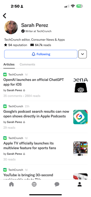 Writers who claim their profiles will be able to see how many people follow them and how many reads their articles have gained through the app. More metrics may be added in time. The company believes writers want a way to better connect with their audiences — beyond Twitter, that is — and this feature could allow them to gain a following that stays with them, even if they move between publications.