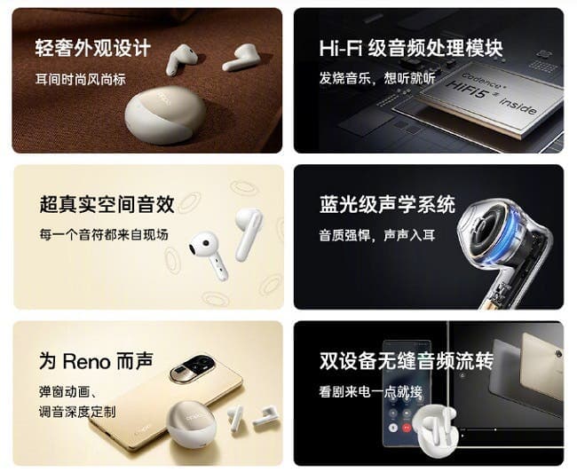 Τα OPPO Enco R2 διαθέτουν οικείο σχεδιασμό, ενώ η θήκη εμφανίζει κομψό φινίρισμα διπλού τόνου με χρυσό χρώμα στο μπροστινό μέρος. Όσον αφορά την ποιότητα ήχου, είναι εξοπλισμένα με μεγάλο δυναμικό οδηγό 13,4 mm και έχουν αναβαθμισμένο υλικό διαφράγματος.