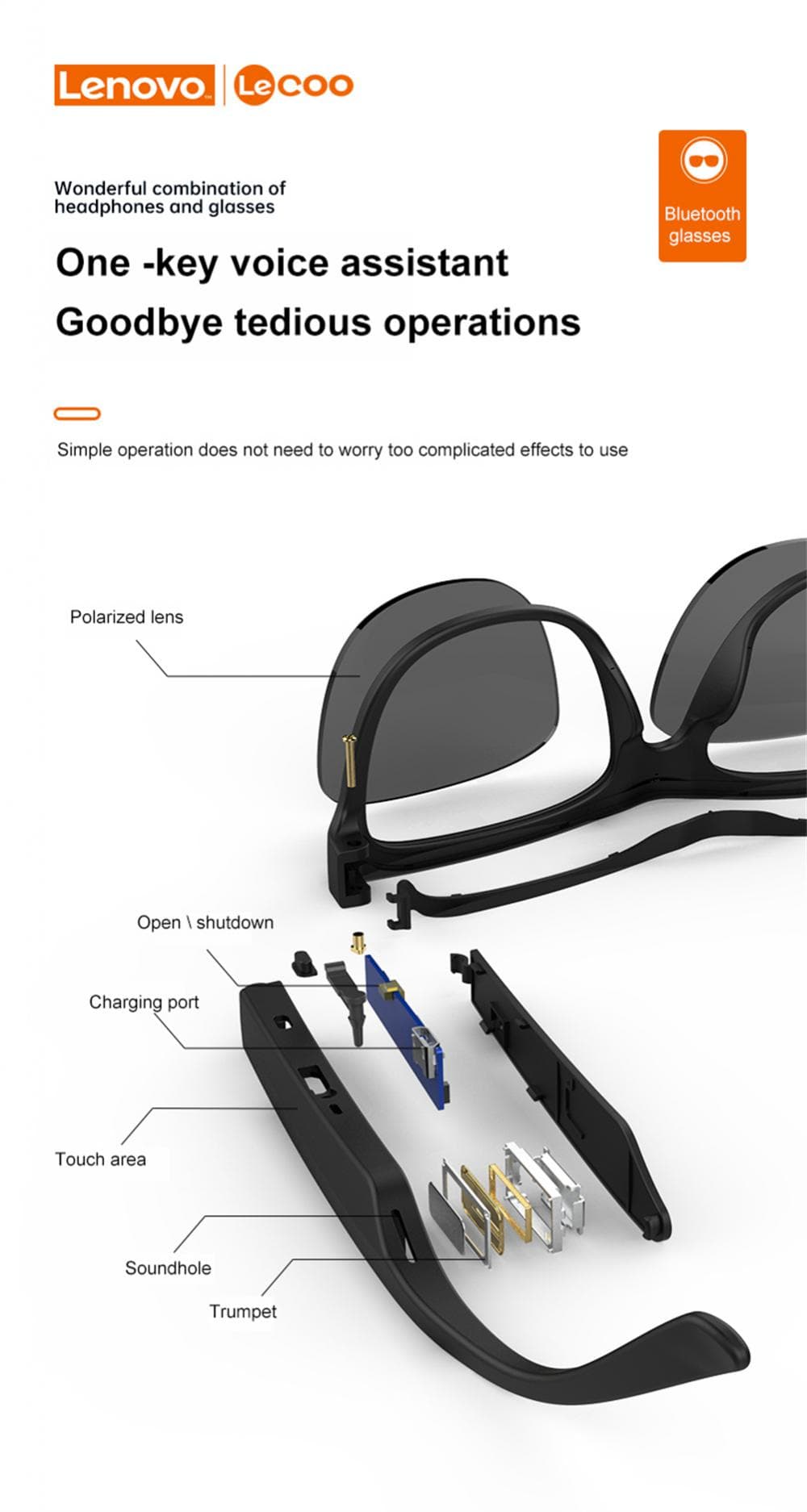 Lenovo Lecoo-C8 bluetooth V5.0 Earphone 120mAh Battery IPX6 Waterproof Anti-glare Voice Control Smart Touch 31g Lightweight Sunglasses Sport Headphone σε τιμή;;; 16,75€ κομπλέ με τα μεταφορικά από το Banggood με