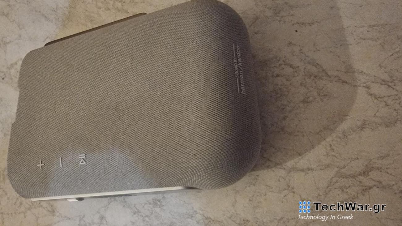 Στο πίσω μέρος βρίσκεται το λογότυπο Harman Kardon, ακριβώς πάνω από το έξυπνα τοποθετημένο σύστημα ηχείων δύο οδηγών 6W που βλέπει προς τα πίσω.