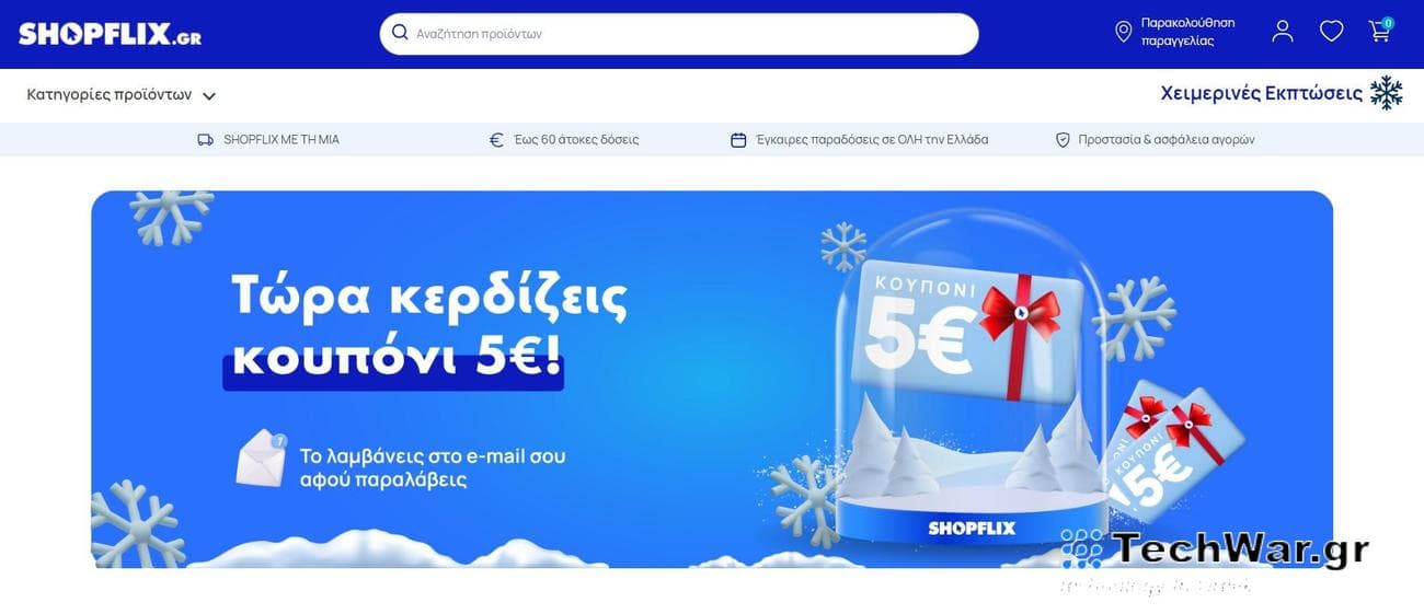 Κάντε τις αγορές σας με το SHOPFLIX και απολαύστε το κουπόνι 5€ που σας περιμένει κάθε φορά