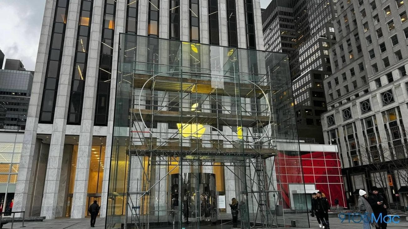 Στην Νέα Υόρκη μπορεί να παρατηρήσει κάποιος μια εντυπωσιακή κατασκευή γύρω από τον κύβο της Apple Fifth Avenue καθώς κατασκευάζεται ένα γιγάντιο αντίγραφο του Apple