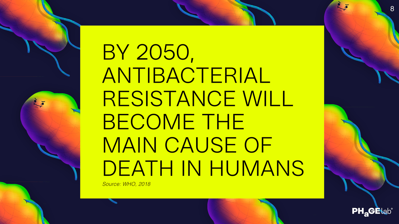 Αυτή η διαφάνεια οδηγεί πολύ προς την απάντηση ότι: Η επιχειρηματική υπόθεση για την ανάπτυξη νέων αντιβιοτικών πέφτει κατακόρυφα, γεγονός που ανοίγει την πόρτα για το PhageLab.