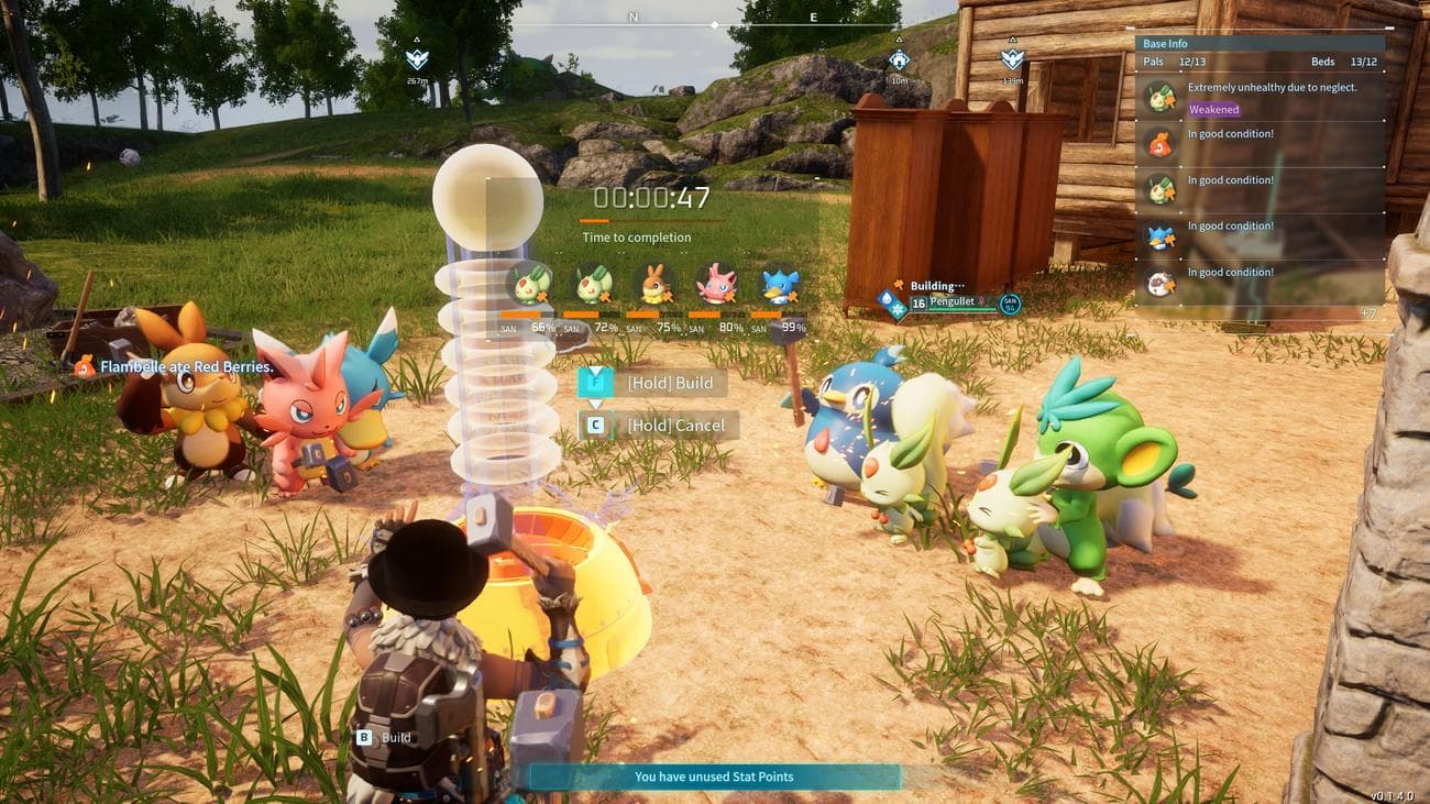 στις βάσεις, μπορείτε να συνεργαστείτε με τους φίλους σας για να δημιουργήσετε κτίρια και να κάνετε εργασίες που διαφορετικά θα χρειαζόσασταν πολύ χρόνο για να κάνετε μόνοι σας. Κάθε Pal έχει το σύνολο των στατιστικών του που του επιτρέπουν να εργάζεται σε διαφορετικούς τομείς, επομένως είναι πολύ σημαντικό να έχετε στη διάθεσή σας μια μεγάλη ποικιλία από φίλους.