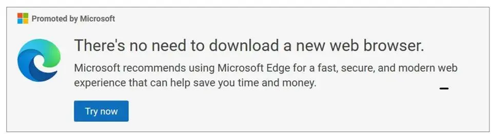 Οι ερευνητές προειδοποιούν ότι «οι χρήστες μπορεί να ανησυχήσουν όταν δουν το διαφημιστικό μήνυμα του Edge να εμφανίζεται στη σελίδα λήψης του Chrome, πιστεύοντας ότι επειδή το banner είναι ασυνήθιστο, πρέπει να είναι πολύ σημαντικό».