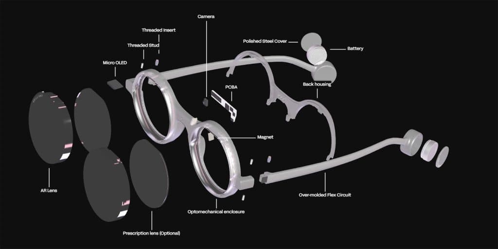 Όσον αφορά το φυσικό υλικό, η οθόνη είναι μια micro OLED «συνδεδεμένη» σε ένα γεωμετρικό πρίσμα στο φακό. Ενώ τα βίντεο προώθησης εμφανίζουν