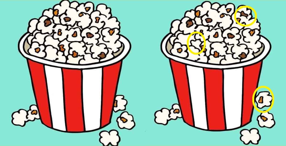 Το συγκεκριμένο τεστ παρατηρητικότητας παρουσιάζει δύο πανομοιότυπες εικόνες με ένα μπολ γεμάτο με ποπ κορν. Οι εικόνες φαίνονται σχεδόν ίδιες, αλλά υπάρχουν 3 διαφορές μεταξύ τους.
