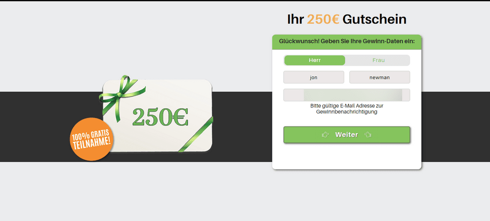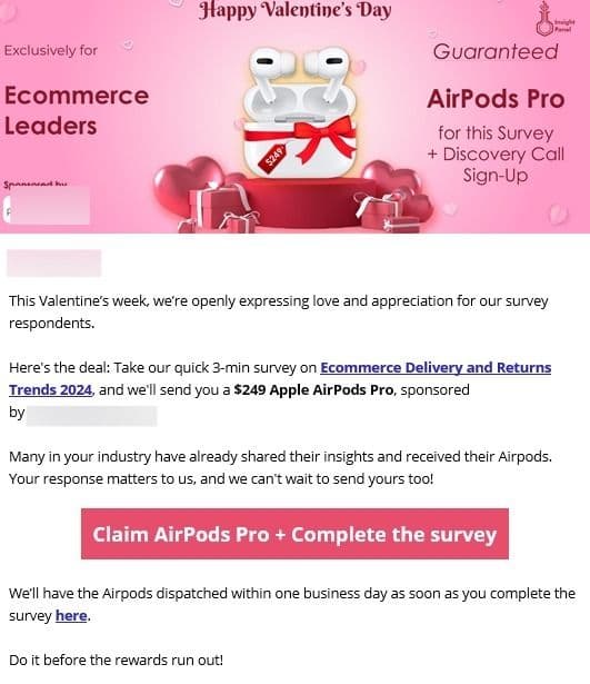 «Θα θέλατε να κάνετε στον αγαπημένο σας μια ξεχωριστή έκπληξη για την Ημέρα του Αγίου Βαλεντίνου; Έχουμε ακριβώς το κατάλληλο για εσάς – την ευκαιρία να κερδίσετε μια δωροεπιταγή αξίας 250 ευρώ της επιλογής σας», αναφέρει το μήνυμα σε μία από τις απάτες.