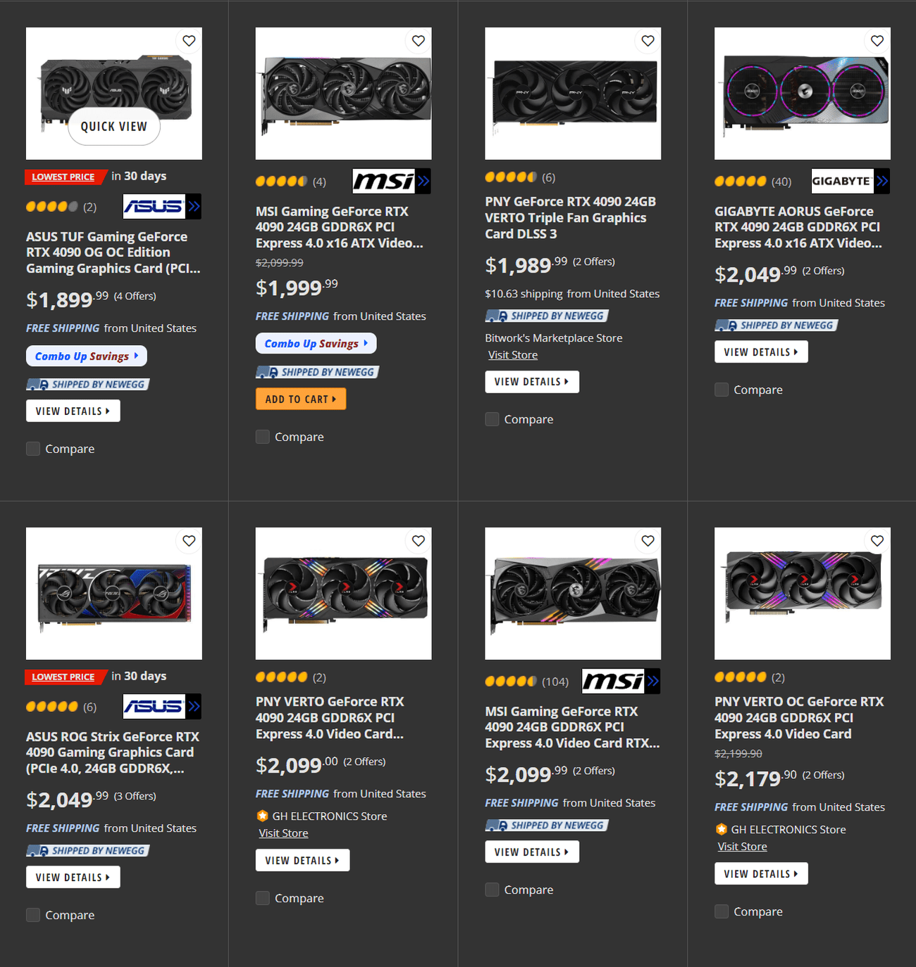 , επιτέλους βλέπουμε τις GPU της GeForce RTX 4090 να πέφτουν στα 1899 $ ΗΠΑ. Οι ίδιες GPU πωλούνταν για 1999 $ ΗΠΑ στο χαμηλότερο επίπεδο μόλις πριν από ένα μήνα.