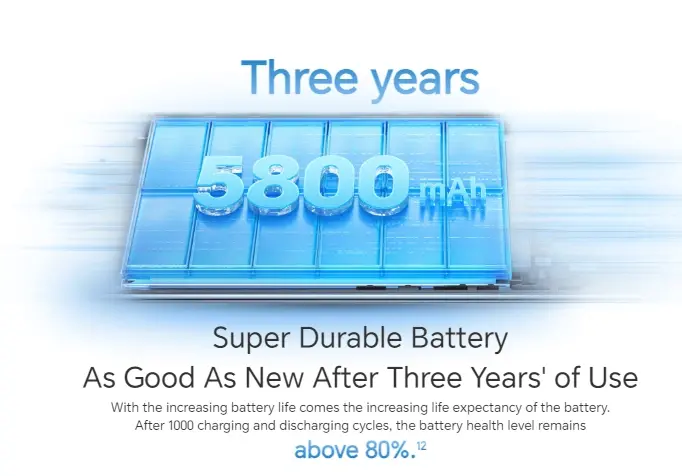 Το τηλέφωνο διαθέτει μπαταρία πολυμερούς λιθίου που υποστηρίζει φόρτιση 35W και συνοδεύεται από τυπικό φορτιστή 11V/3,2A, συνδεσιμότητα Bluetooth BT5.1, υποδοχή nano sim και χειρονομία πολλαπλής αφής έως και 10 σημεία αφής.