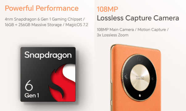 Το Honor X9b κυκλοφορεί σήμερα με δύο όμορφα χρώματα, δηλαδή το Midnight Black και το Sunrise Orange, με ένα εκπληκτικό στρογγυλό πάνελ κάμερας που κάνει το τηλέφωνο να αξίζει μια κατηγορία. Είναι συμβατό με χαρακτηριστικά όπως η αναγνώριση προσώπου, η λειτουργία με ένα χέρι, ο αισθητήρας βαρύτητας, ο αισθητήρας δακτυλικών αποτυπωμάτων, ο αισθητήρας φωτός περιβάλλοντος, η εγγύτητα, το γυροσκόπιο και ο αισθητήρας πυξίδας που θα το βοηθήσουν να είναι μπροστά σε σχέση με τους σύγχρονους. Διαθέτει UI και λειτουργικό σύστημα MagicOS 7.2, βασισμένο στο Android 13.